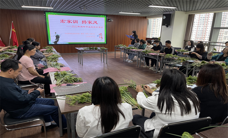 为营造幸福温馨的节日氛围,本次活动的主题是带领大家亲手制作“菖蒲艾叶祈福花束”,引导广大党员和工会会员们从传统文化中汲取培育道德的养分,体验端午的节日乐趣,树立家庭成员尊老爱幼、家庭和睦、勤俭持家、自立自强、互帮互助的家庭文明新风尚。 活动开始前,我们开展了“宏家训、扬家风”的端午主题宣讲。