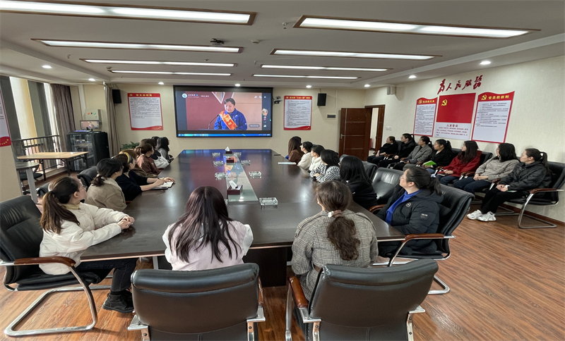 公司工会主席、省建设工会女工委员赵格同志现场参会,公司办公室组织全体党员干部及在职在岗女职工,在十楼2号会议室同步集中观看直播。