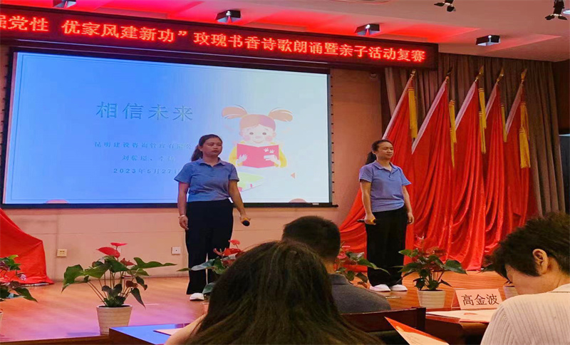 为认真学习宣传习近平新时代中国特色社会主义思想和习近平总书记考察云南重要讲话精神,激发广大职工爱党之情、奋斗之志,厚植爱国情怀,弘扬家庭美德,听党话、感党恩、跟党走,坚决拥护“两个确立”,坚决做到“两个维护”,积极投身中国式现代化建设,为推动省委“3815”战略目标实现,推进全省住房和城乡建设事业高质量发展而努力工作,贡献力量,经省建设工会研究,于2023年5月27日上午,组织各下属工会举办了“学思想强党性 优家风建新功”玫瑰书香诗歌朗诵暨亲子诵读活动。