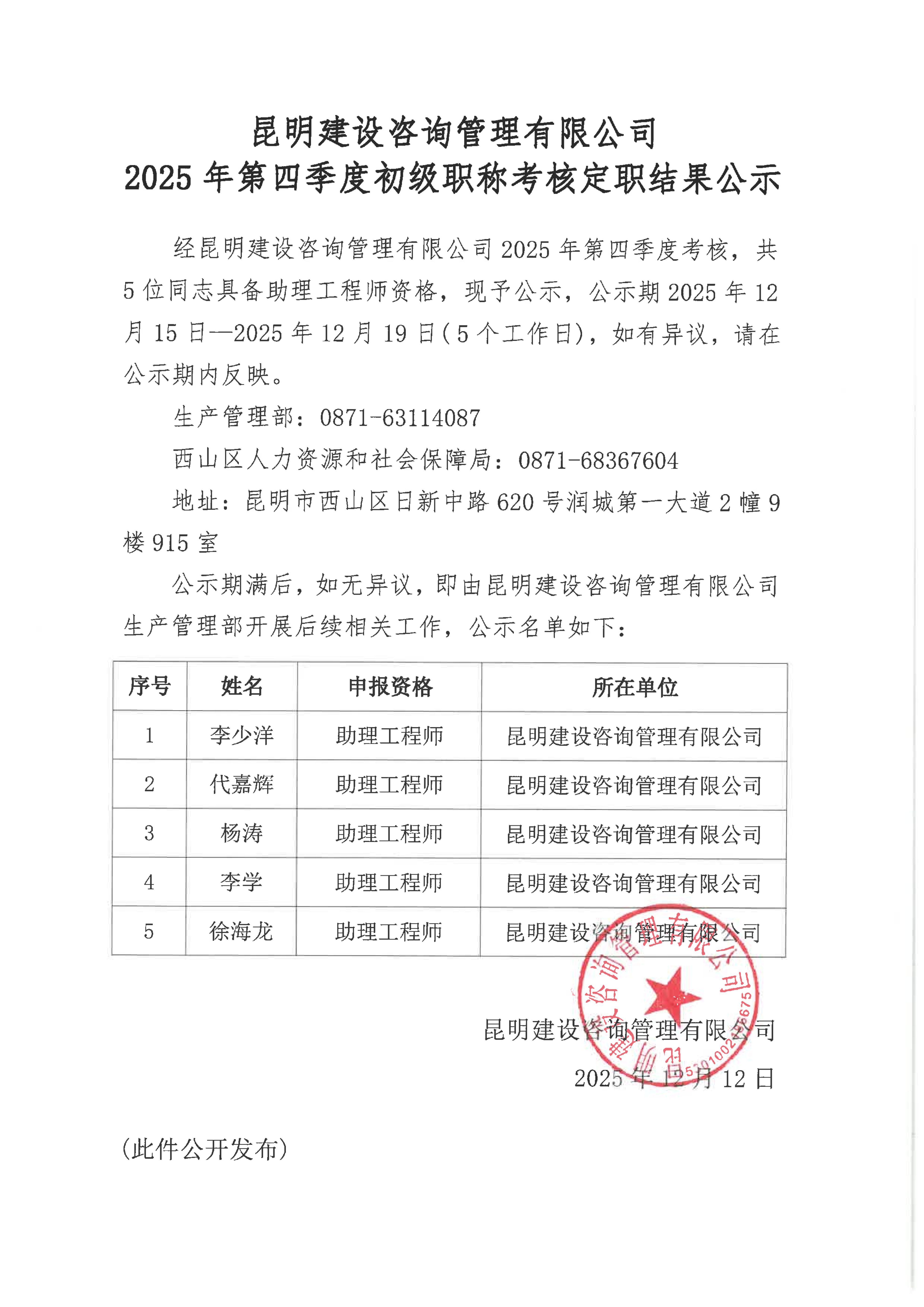九游·官方版web站入口 2025年第四季度初级职称考核定职结果公示